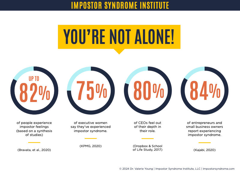 It is, however, incredibly common! In studies collected by the Impostor Syndrome Institute, 70% to 84% of people experience impostor syndrome at some point in their lives.